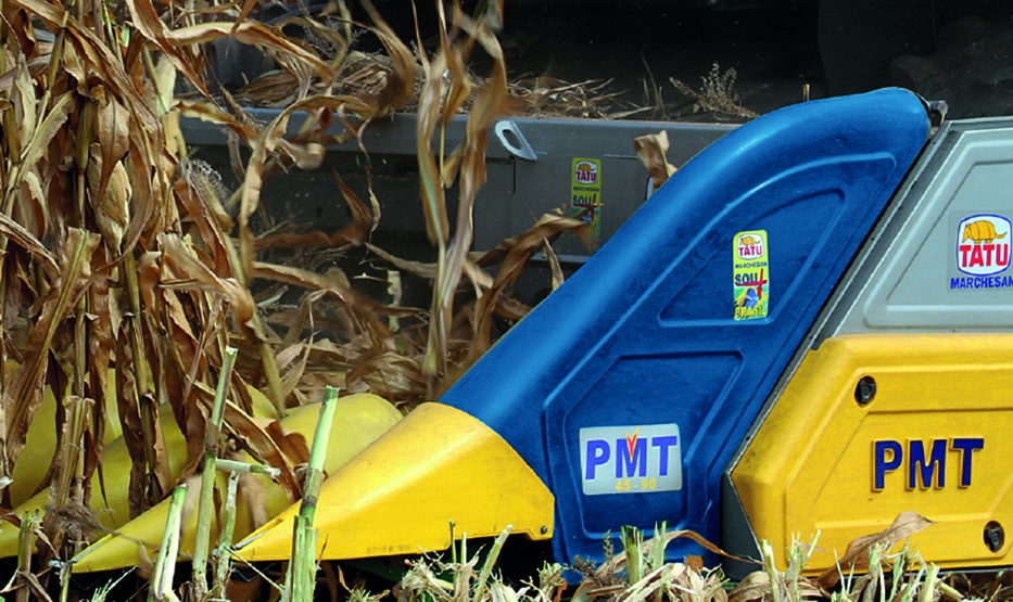A PMT – Plataforma de MilhoTatu, possui um chassi intercambiável com todos os modelos de colheitadeiras nacionais e importadas, mediante utilização de uma moldura específica para o acoplamento ao elevador de palha. Este sistema permite que um único operador realize o trabalho. Também pode ser responsável pelo nivelamento da plataforma no momento da colheita.